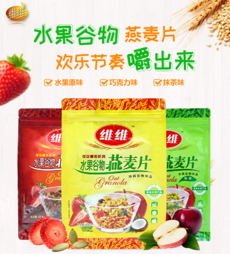 维维水果谷物燕麦片,双重水果、多种谷物,增酸同时补充膳食纤维,帮助调节肠道功能,营养均衡有活力。